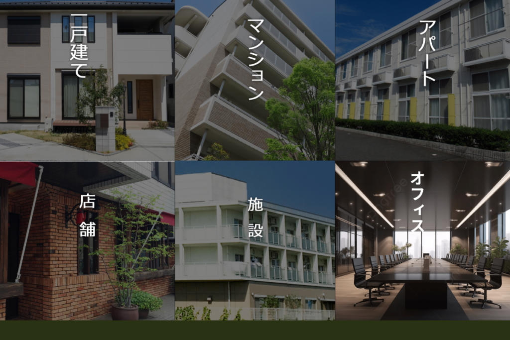 当社は「戸建」「マンション」「オフィス」「店舗」「施設」など様々な内装解体工事に対応しております。