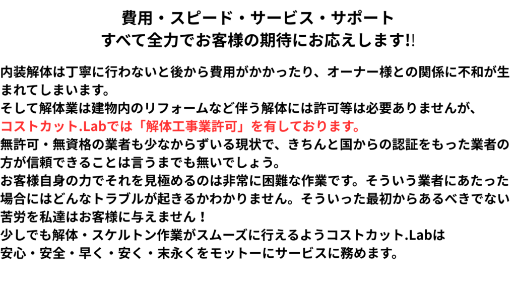 内装解体・原状回復の価格表
